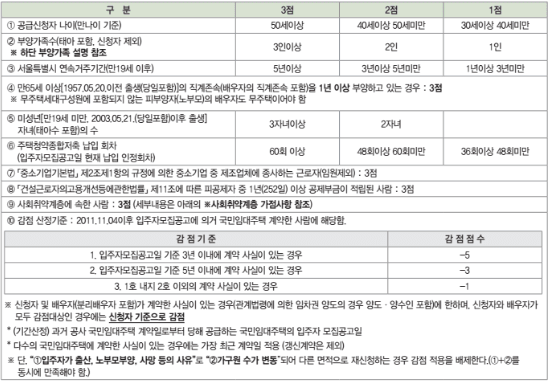 -5점 : 모집공고일 기준 3년 이내에 국민임대주택 계약 사실이 있는 경우
