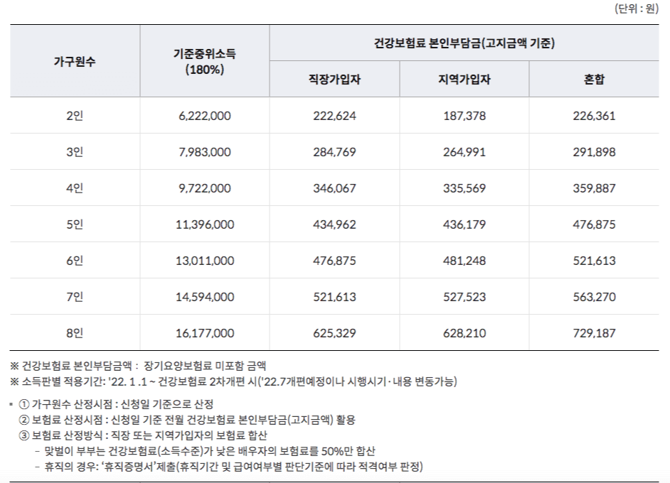 - 건강보험료 본인부담금 전월분 고지금액 기준중위소득 180% 이하 및 기초생활보장수급자 및 차상위계층