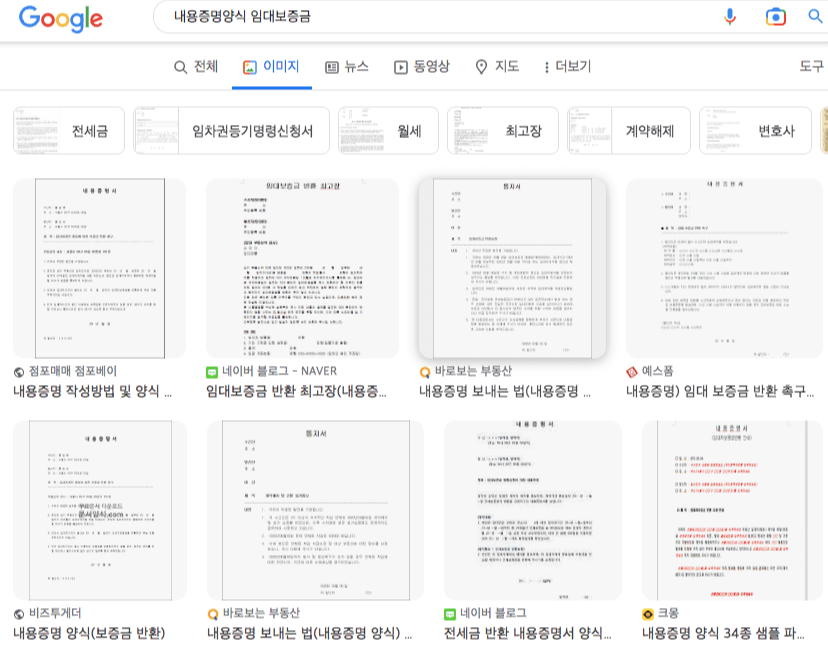 내용증명양식의 경우 구글에 검색하면 예시를 참고할 수 있습니다.