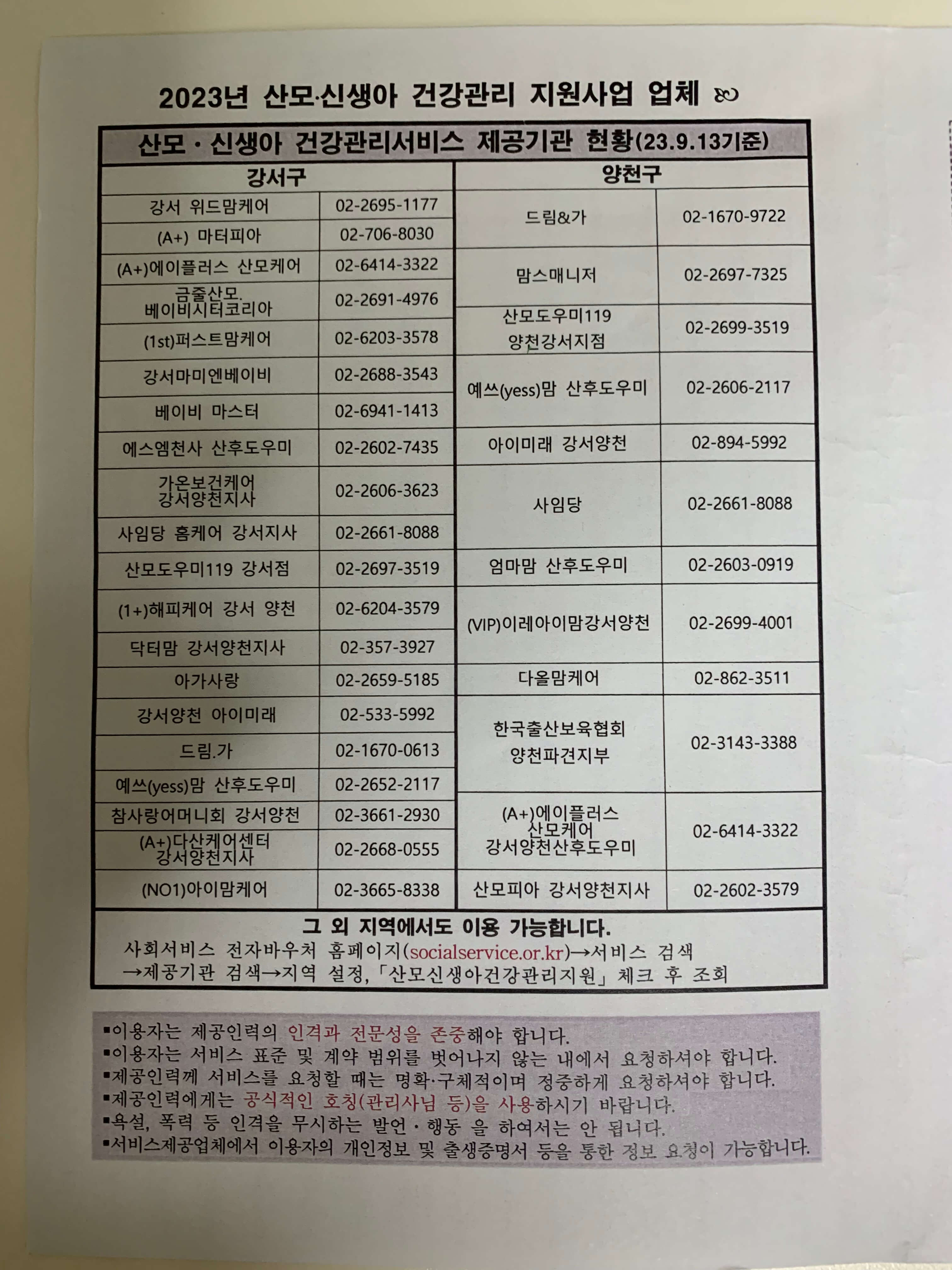 대부분 '나와 맞지 않는 관리사님'들을 만났을 경우 인력 교체를 고려해서 제공인력이 많은 업체를 선택하는 경우가 많다고 하지만 제 생각에는 인력이 많을 경우 신생아 케어 교육이라던지, 인력관리가 상대적으로 어려워져 전문적이지 않은 분들도 많을 것이라고 생각되어 규모가 너무 크지 않은 업체를 선택하였고, 결과적으로는 정말 좋은 관리사님을 만나게 되었습니다.