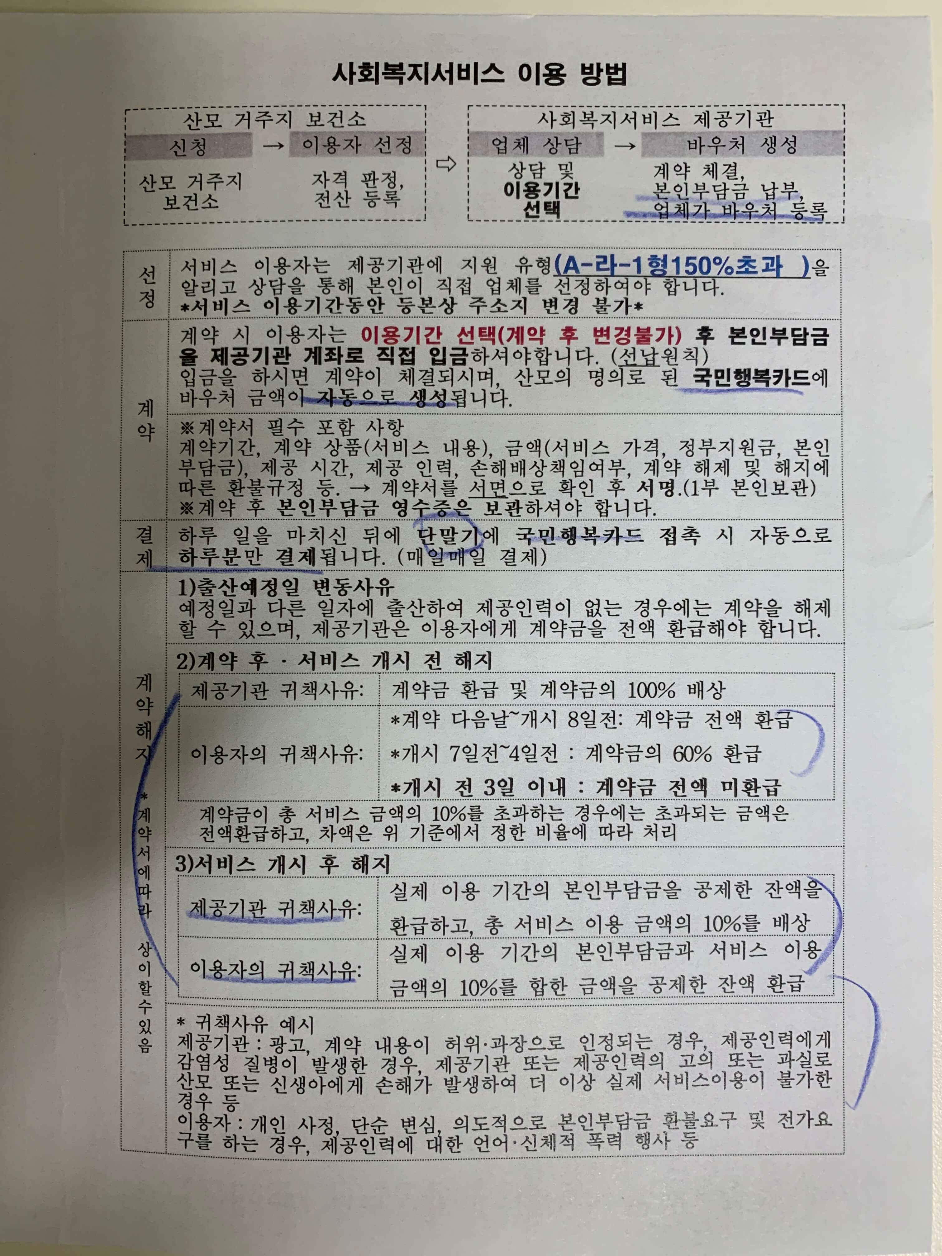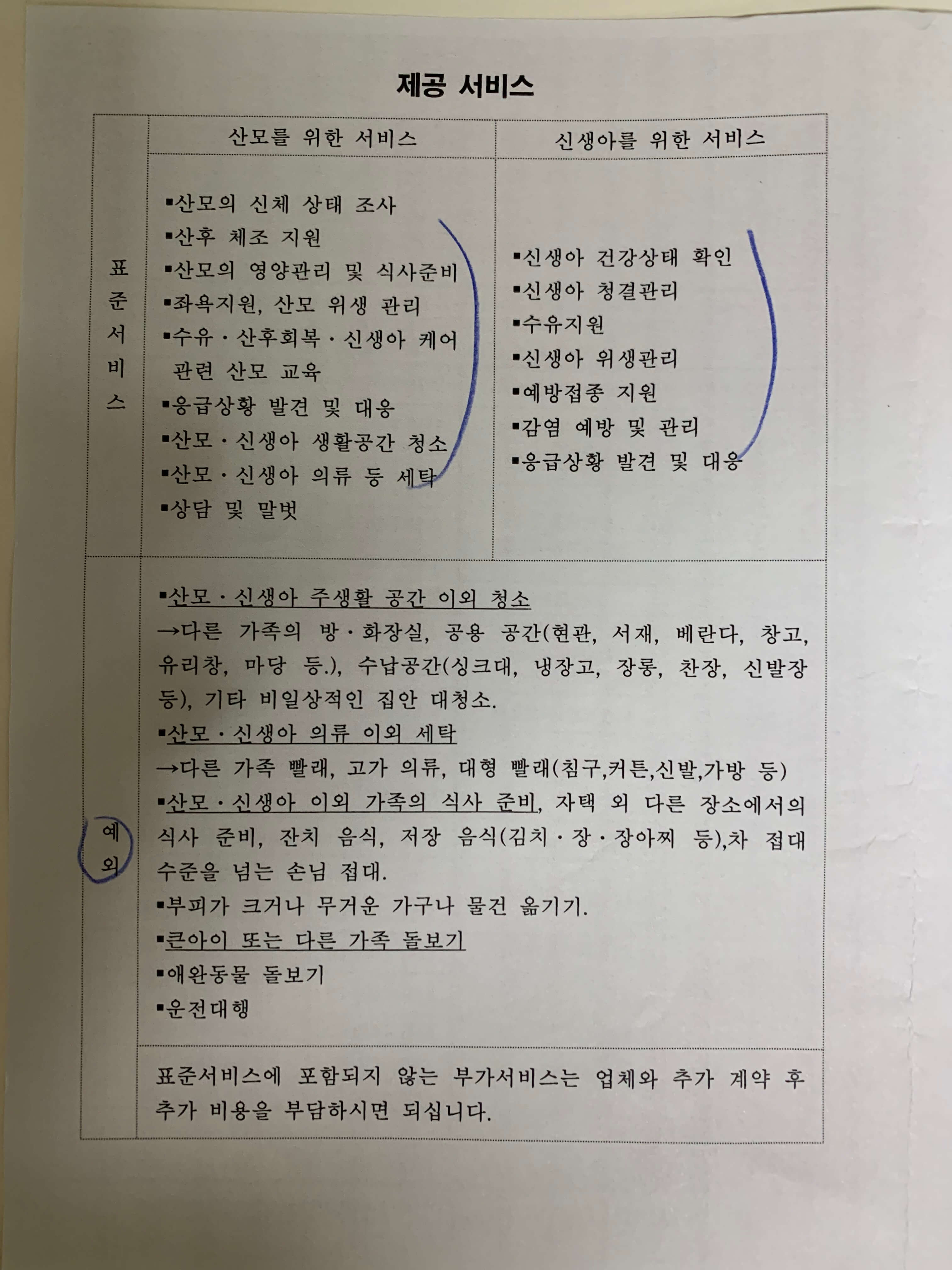 산모 식사준비, 산모와 신생아 세탁물 관리 및 청소를 지원합니다.