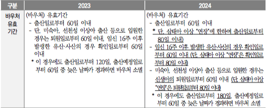 출산 예정일 40일 전부터 ~ 출산일로부터 30일까지 신청해야 합니다. 바우처 유효기간은 출산일로부터 60일 이내이기 때문에,